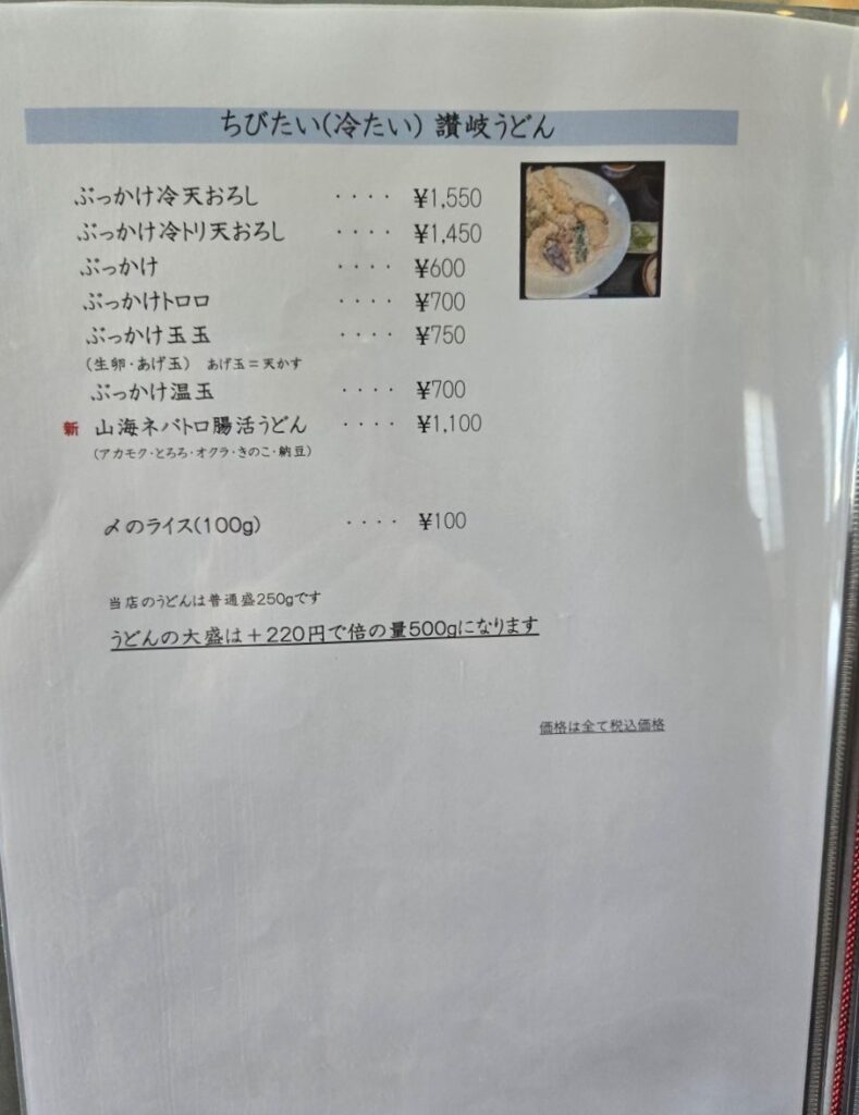 数あるメニューの中から、まずいただいたのはぶっかけ玉玉(たまたま)うどんです。