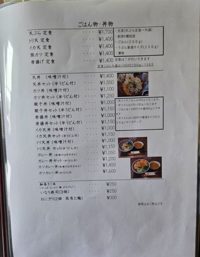 丼物も、単品(味噌汁付)はもちろん、プラス150円で半うどん付きのセットに変更可能。うどんの量を普通サイズにアップしたり、ごはんを大盛りにしたりと、お腹の空き具合に合わせて自由にカスタマイズできるのも、このお店が愛される理由の一つです。