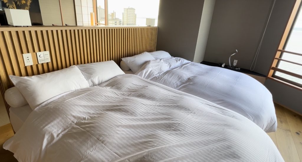 メインのお部屋には、ベッド二つと布団二組で4名、続き部屋にはベッド二つとソファーベッドで3名、全部で7名まで泊まれますので、ご家族で、ちょっと贅沢な時間を過ごすのにも良いかと思います。