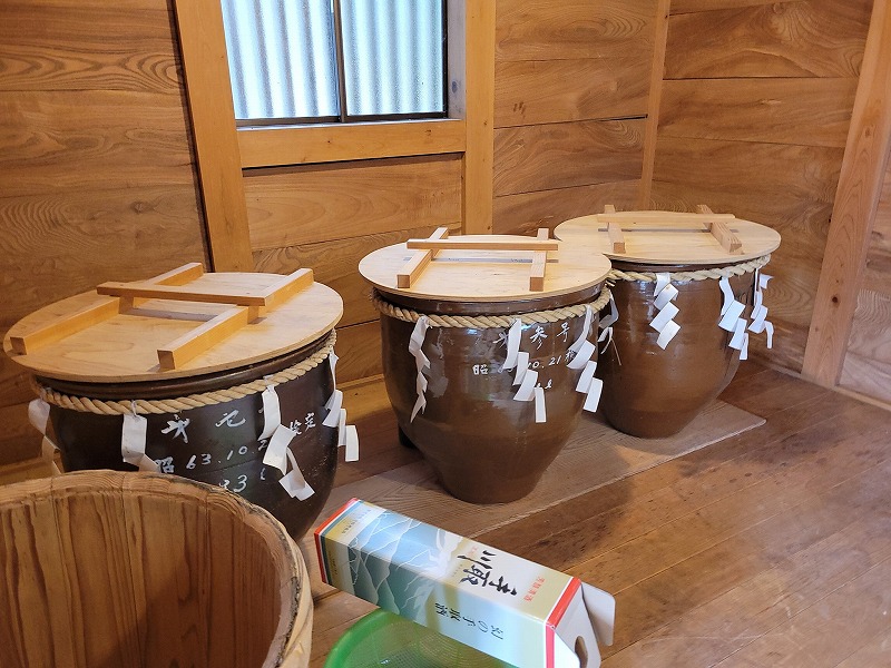 境内にあるみくりやにおいて、毎年11月に作られます。能登の美味しいお米と、天日加氣山からの湧き水により仕込まれ、みくりやにある大きな瓶で発酵を待ちます。