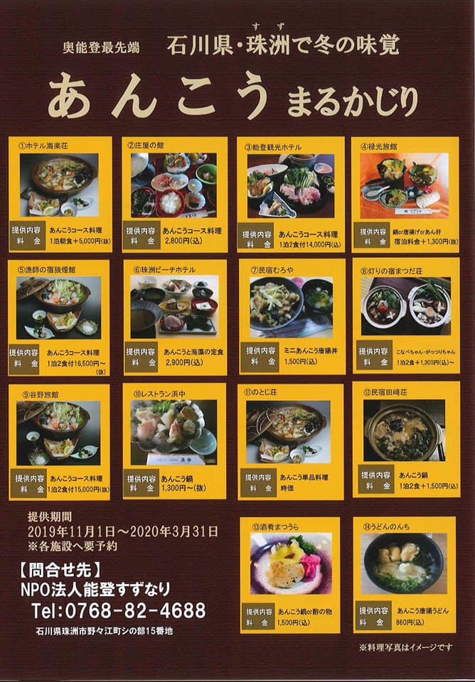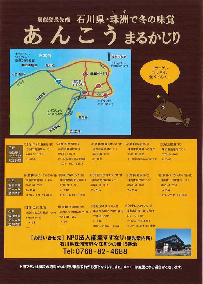 奥能登最先端、石川県珠洲でコラーゲンたっぷりな「あんこう料理」が食べられるお店を14店舗ご紹介します。