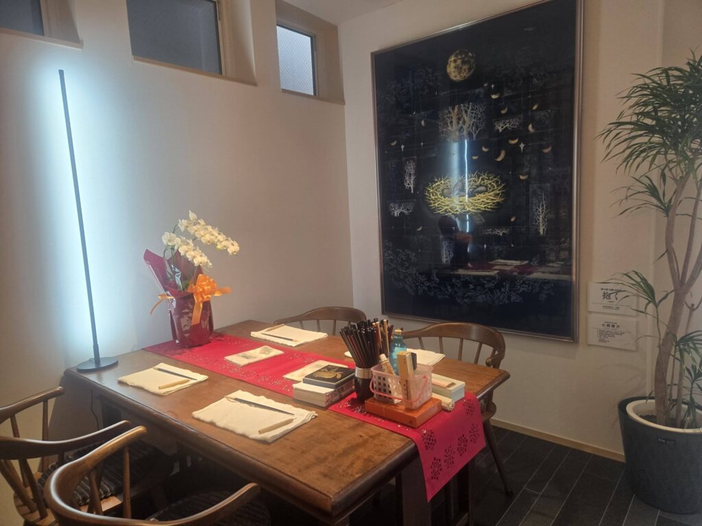再建前のお店で使われていた、輪島塗の看板や暖簾、パネルが随所に活かされていています。