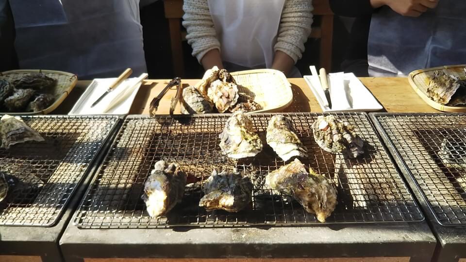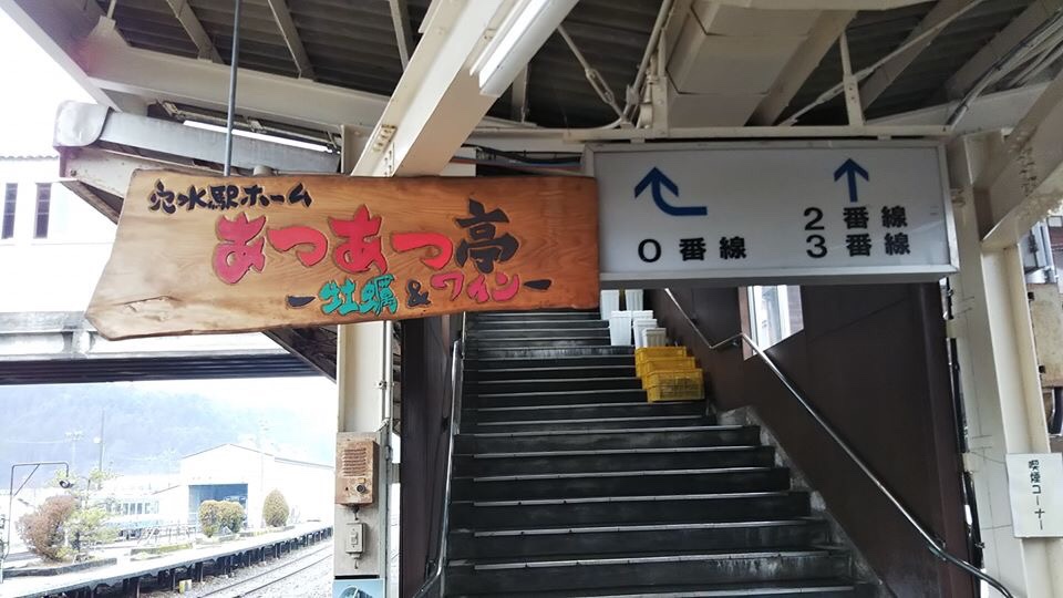 ホームには、特設の焼き牡蠣会場ができていました。