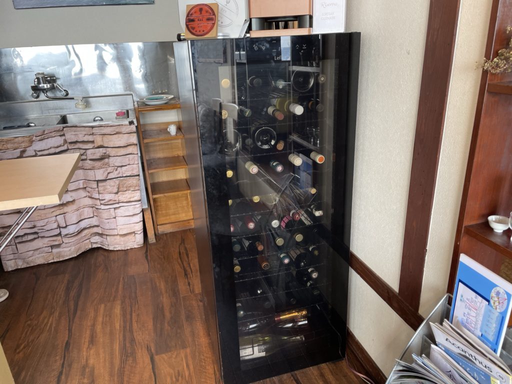 ワインセラーも客席から見えるところにあります。いろいろ揃えてあるようです。