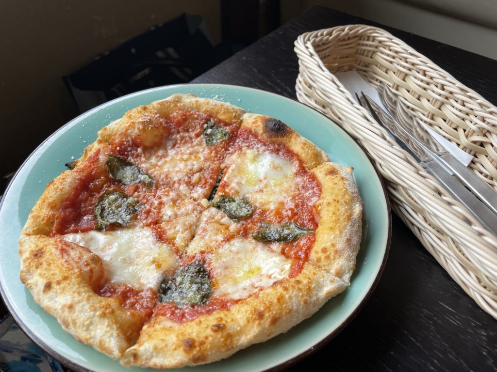 ピザも見るからにおいしそうでしたが、実際、生地も、使われているチーズもすごくおいしかったです。小ぶりで、ひとりで食べきれるサイズです。こちらはマルゲリータ。
