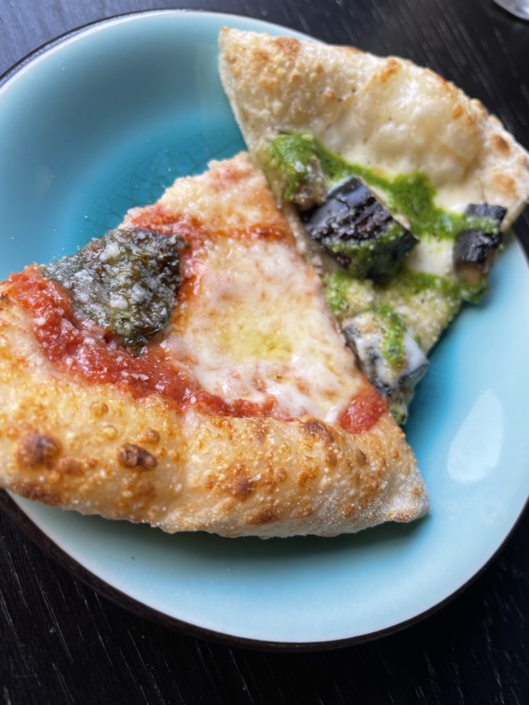 焼きナスのピッツァも見た目もきれいで食べる前にテンションが上がります。