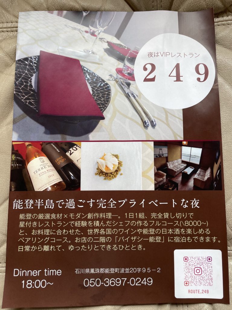 穴水町から海岸線沿いに能登町へ249号線を走っていると左手に見えてくる二階建ての古民家がカフェ「249」です。