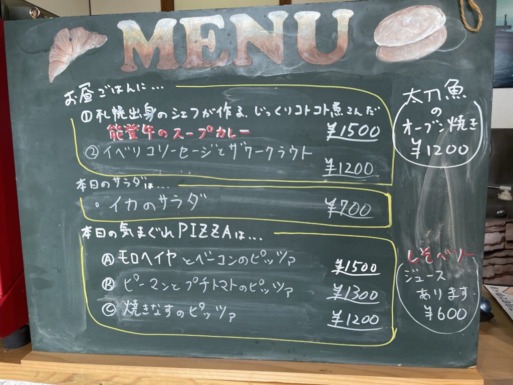 お店のメニューは、店内にある2枚の黒板に書かれています。