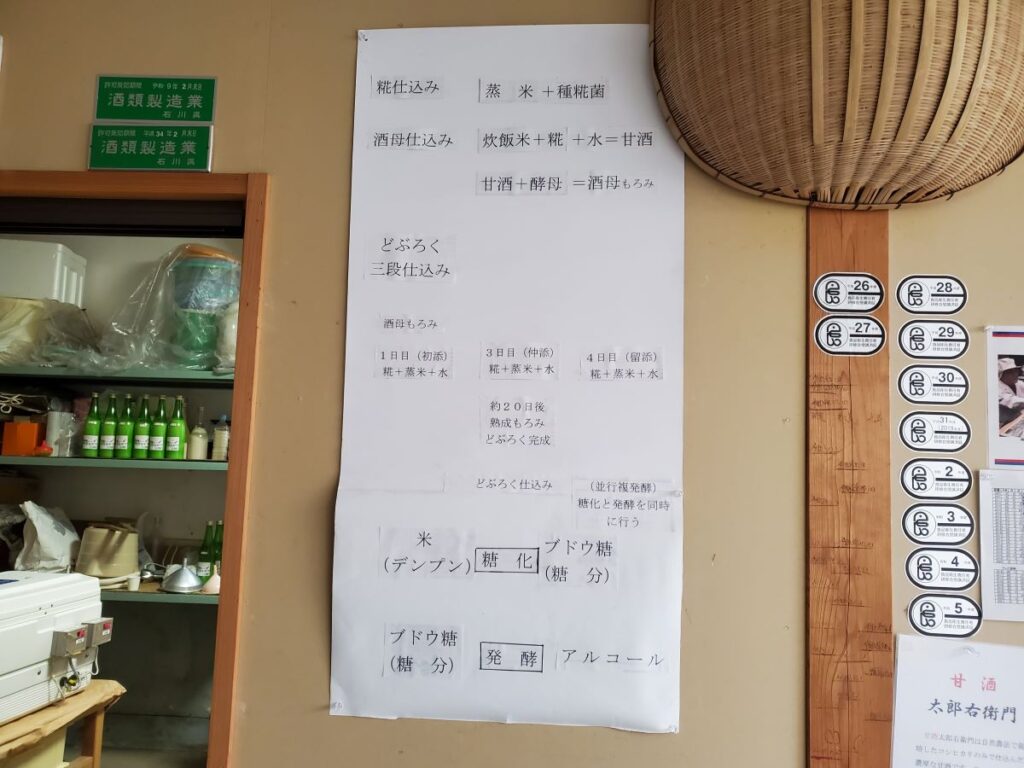 製造所の壁には、どぶろくを造る工程がわかりやすく書かれたものが貼ってありました。