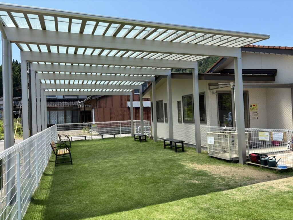 能登へのドライブなど、遠方からお越しのお客様にも心から楽しんでいただきたいという思いから、ドッグランには屋根を設置されました。
