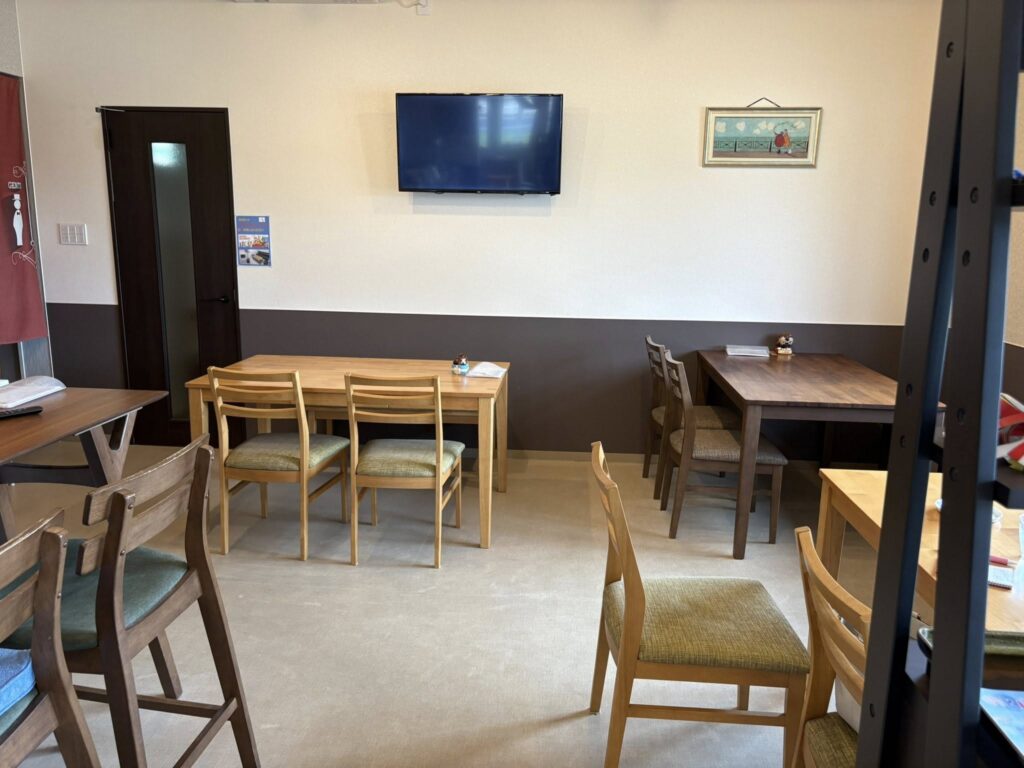 カフェスペースには、カウンターが4席と4人掛けのテーブル席があります。