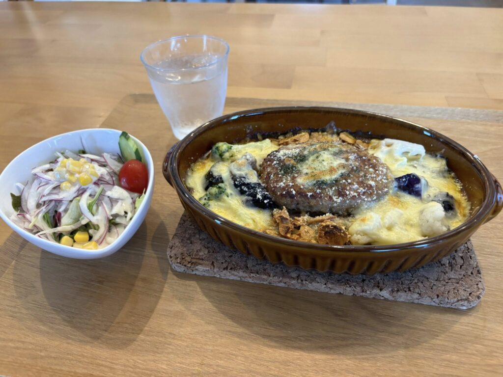 ・ハンバーグとカレーの野菜ドリア(サラダ付き) 1680円