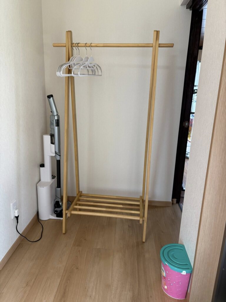玄関の横に、MOMOのお家にわんちゃんが入る時に、わんちゃん用ゴミ箱とあんよ拭きが置いてあります。