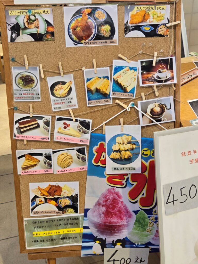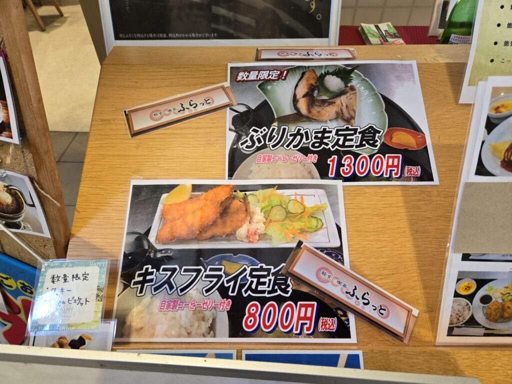 道の駅織姫の里なかのとフードコートにある「軽食・喫茶ふらっと」をご紹介します。能登の食材を使った定食、サンドイッチやケーキ、ファストフードまでメニューも豊富です。