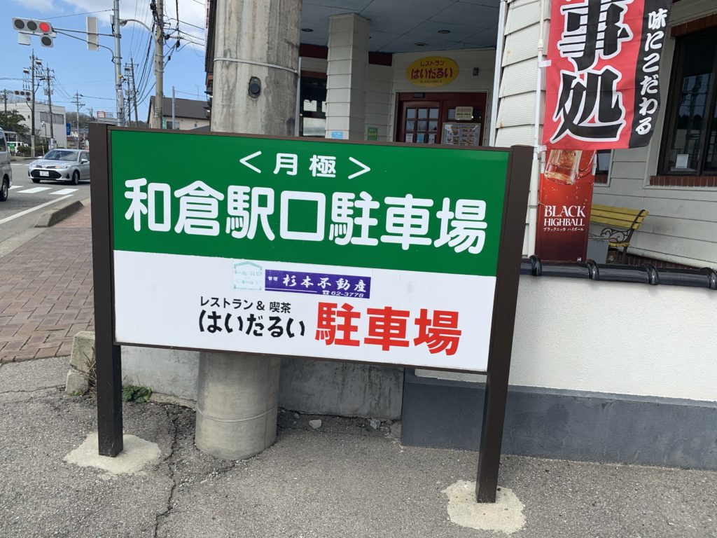 お店の右手には、広い駐車場があり、お店の裏手、和倉温泉側にも数台分の駐車場があります。交通手段は自家用車がメインの地元民にとっても使いやすいお店です。