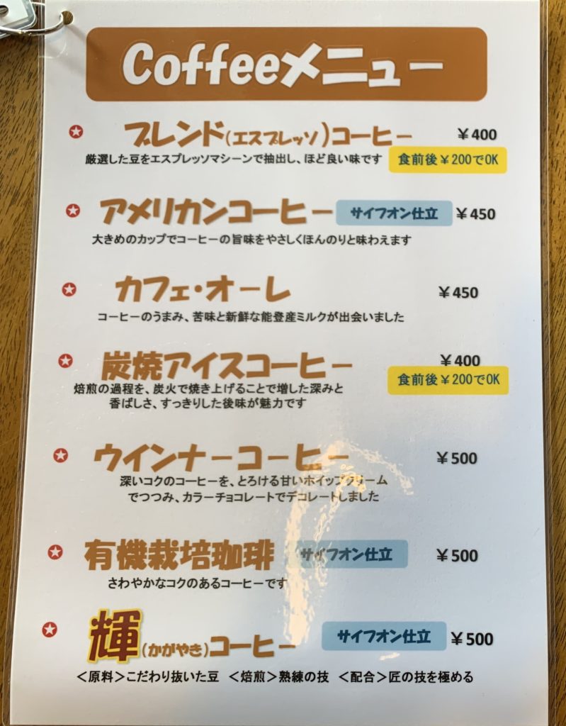 初代店主は、40年前、これからは地方の時代だから、地元能登の食材も使って喫茶店を開業しようと思われたそうです。地産地消という言葉がまだなかった頃に、そこに目を付けられていたのはさすがですよね。