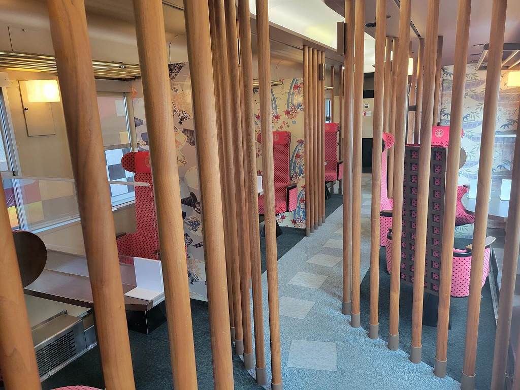 1号車は、日本庭園と飛び石をイメージしており、8つの個室となっています。