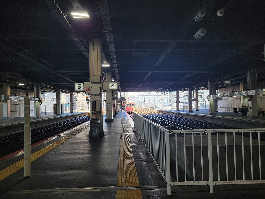 JR金沢駅構内で、奥の方にある4番ホームが、花嫁のれん号の発着場所です。