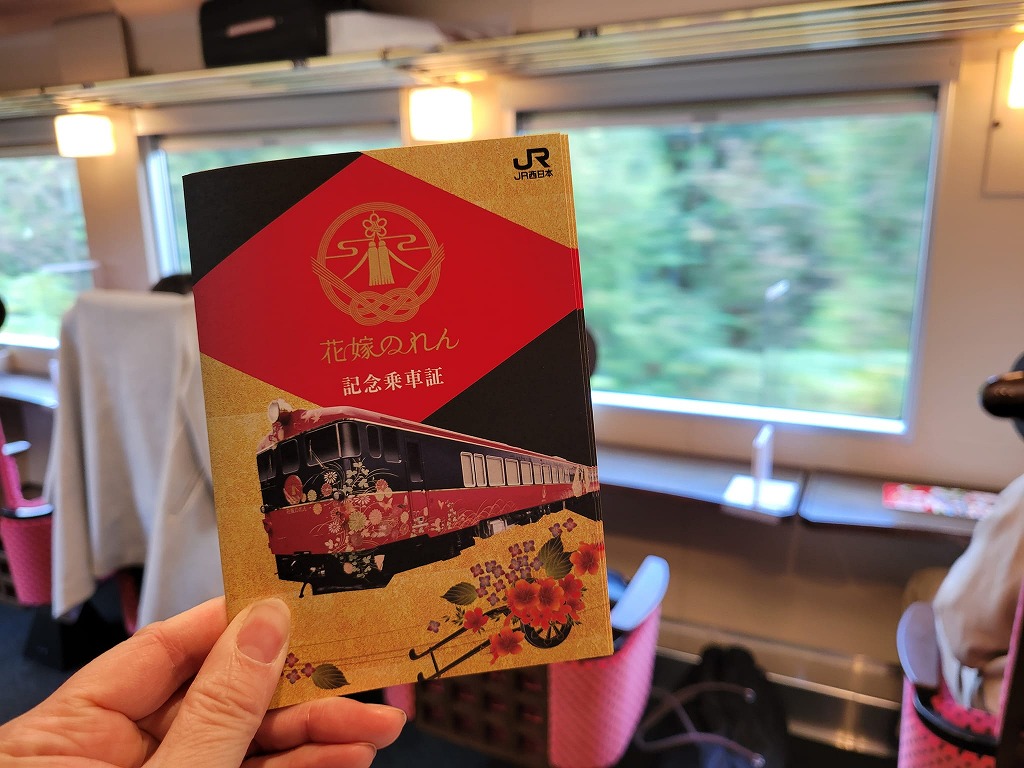 花嫁のれんでは、乗車の記念に、乗車切符を挟んでとっておける綺麗な台紙がいただけます。