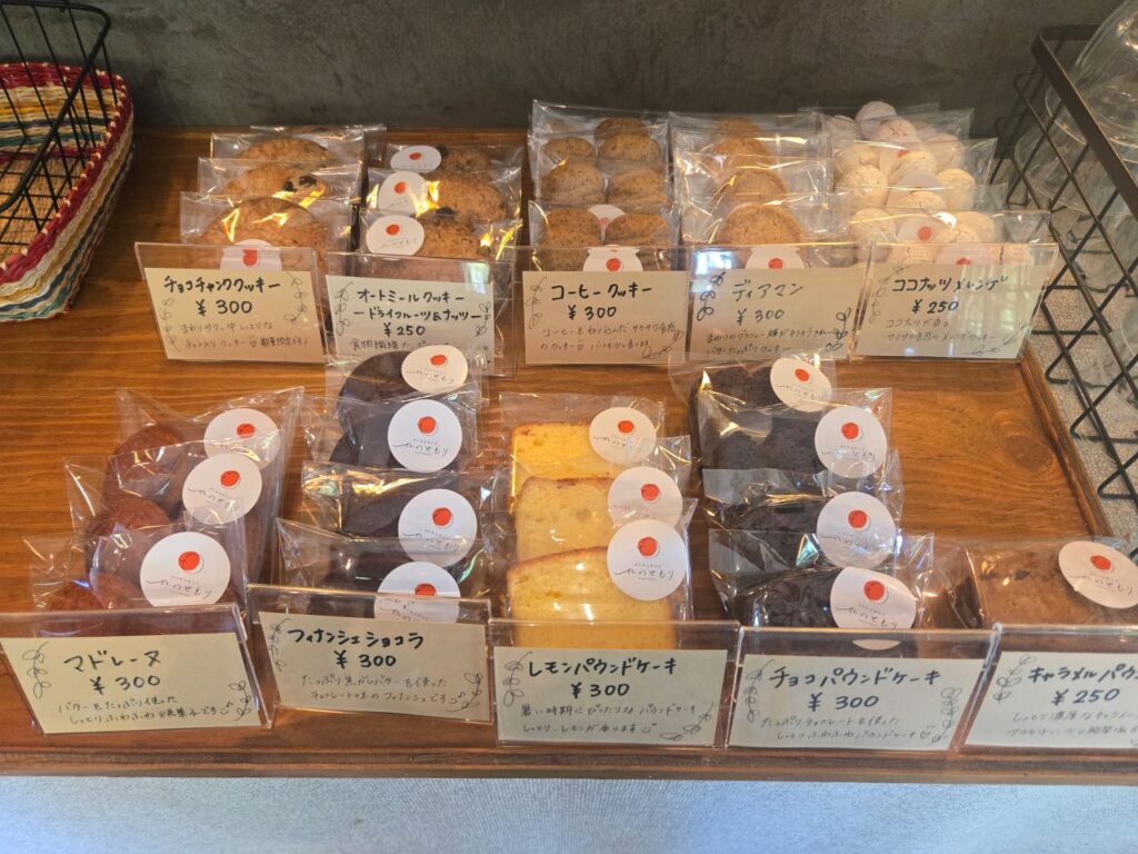 店内入口すぐの場所に、パウンドケーキやクッキーの焼き菓子が並んでいます。