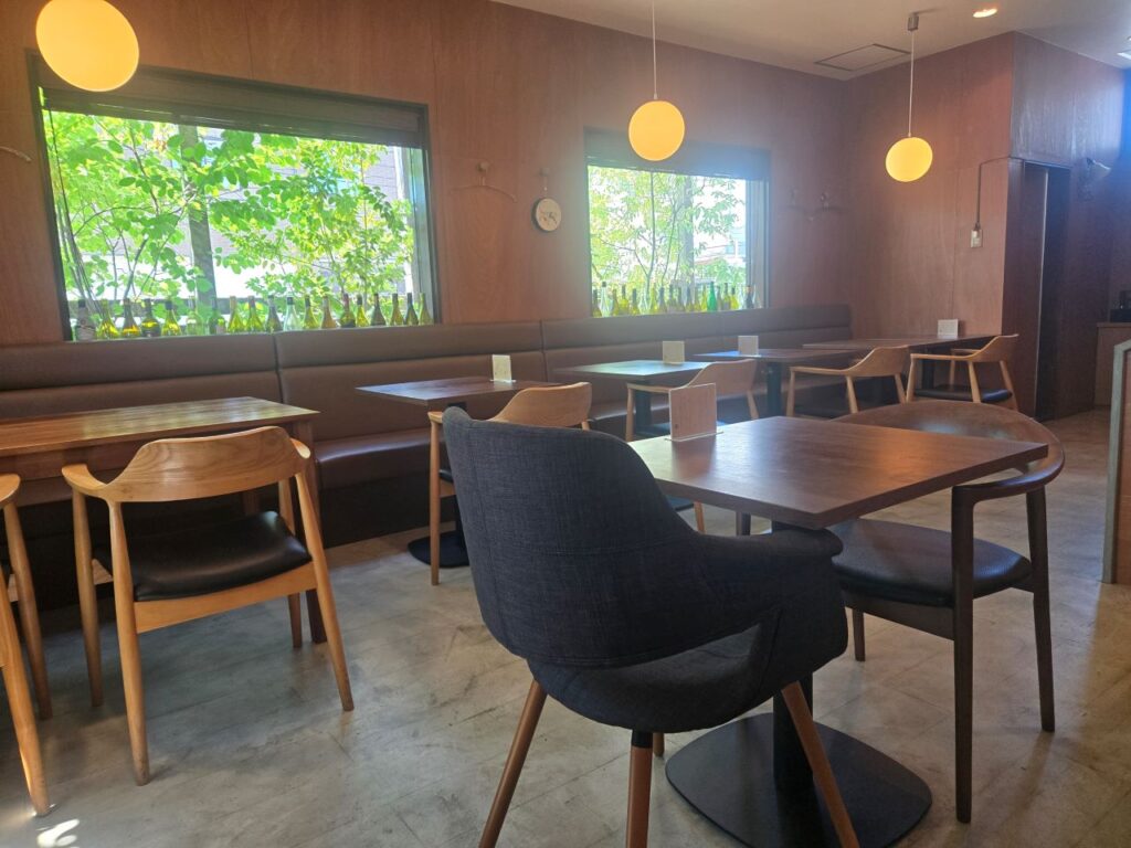 木の温もりを感じる店内は明るく落ち着いた雰囲気で、女子会にもぴったり。ゆったりした時間を過ごせる心地よい空間でした。