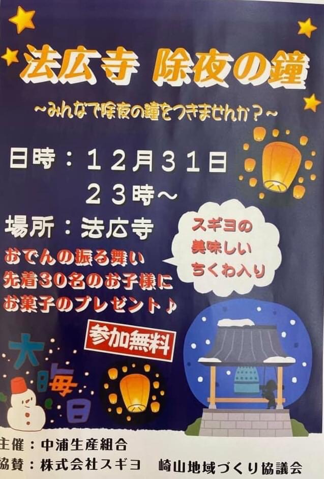 年の瀬もせまってきました。除夜の鐘のご案内です。