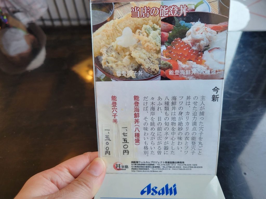 と、ありました。これは能登海鮮丼を注文しないと!ですね。能登穴子丼は次回繰り越しにしました!