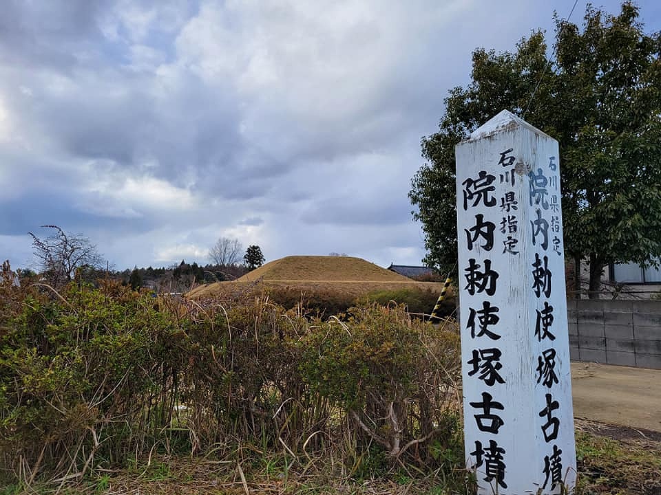 今回ご紹介する院内勅使塚古墳(いんないちょくしづかこふん)は、石川県指定史跡となっている美しい古墳です。
