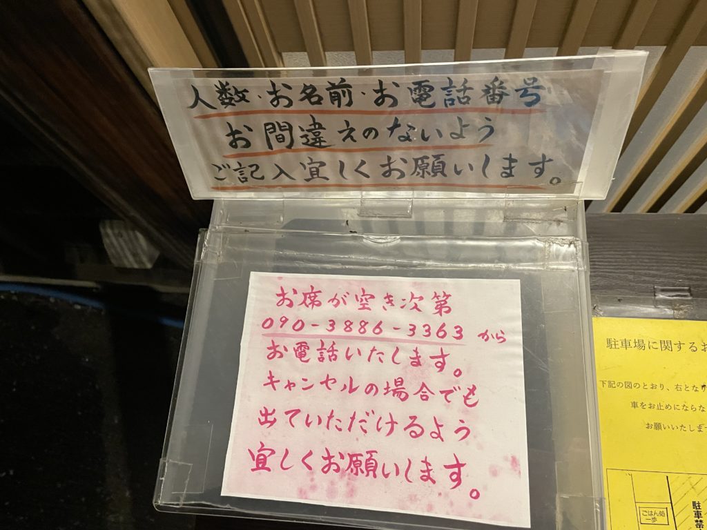 入り口にある指示の通りに、リストに名前と電話番号を書いておけば、席が空いた段階で連絡をくれます。