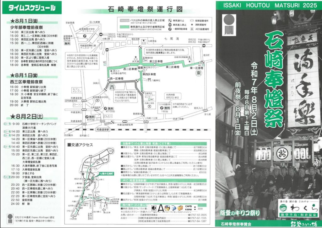 - 公共交通機関の利用も検討を! 祭り当日は交通規制や駐車場も混み合います。和倉温泉駅近くでもありますので、事前に情報をチェックして、公共交通機関の利用も検討してみてください。