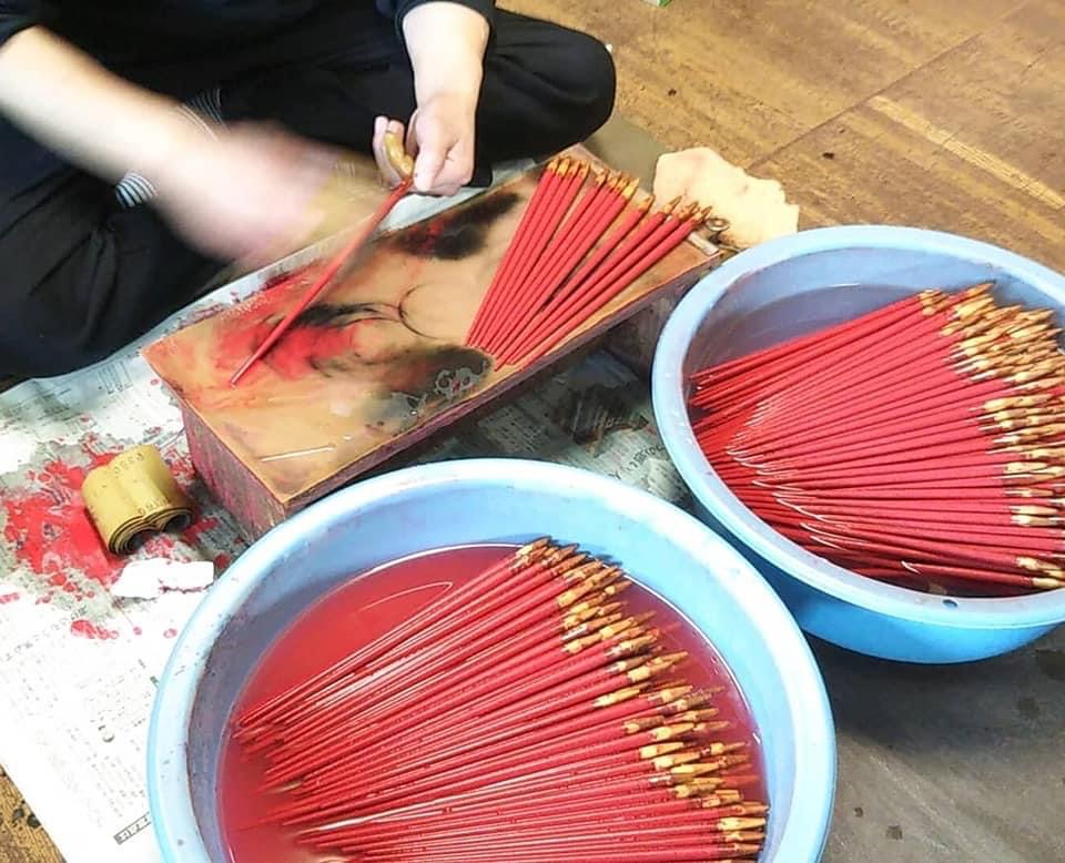輪島の箸作りは、箸の木地の選別から始まり、漆を塗り、乾かすという工程を何度も繰り返し、かなりの手間と時間を要します。