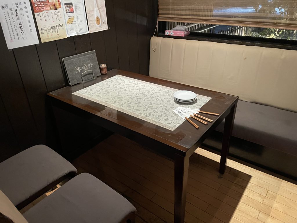 通路左手に4人掛けのテーブルが二つあるブースが二個、合計16席あります。