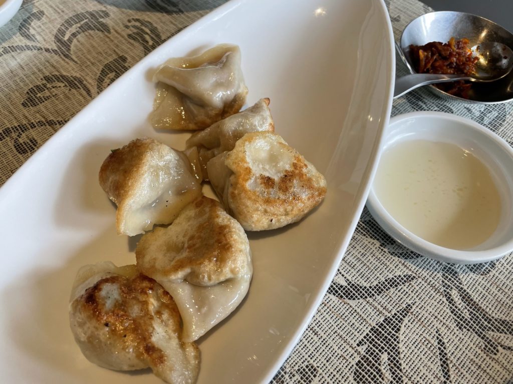 ちょっと変わった形で、透明のポン酢にお好みでラー油を加えて食べる餃子も美味しかったです。