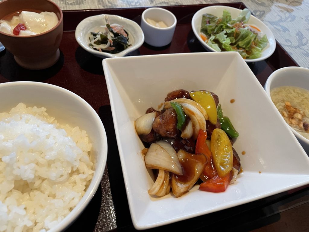 酢豚は、お野菜に埋もれていますが、お肉がたっぷり入っていて、味も濃すぎず食べやすくておいしかったです。