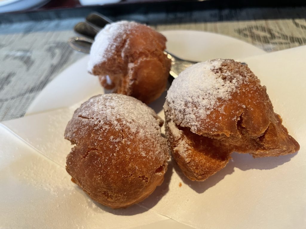 沖縄名物のサーターアンダギーのルーツとなったお菓子のようですが、それよりは小ぶりで、白ごまをまぶしたものが多いようですが、こちらのは、粉砂糖がかかっており、上品な感じになっていました。