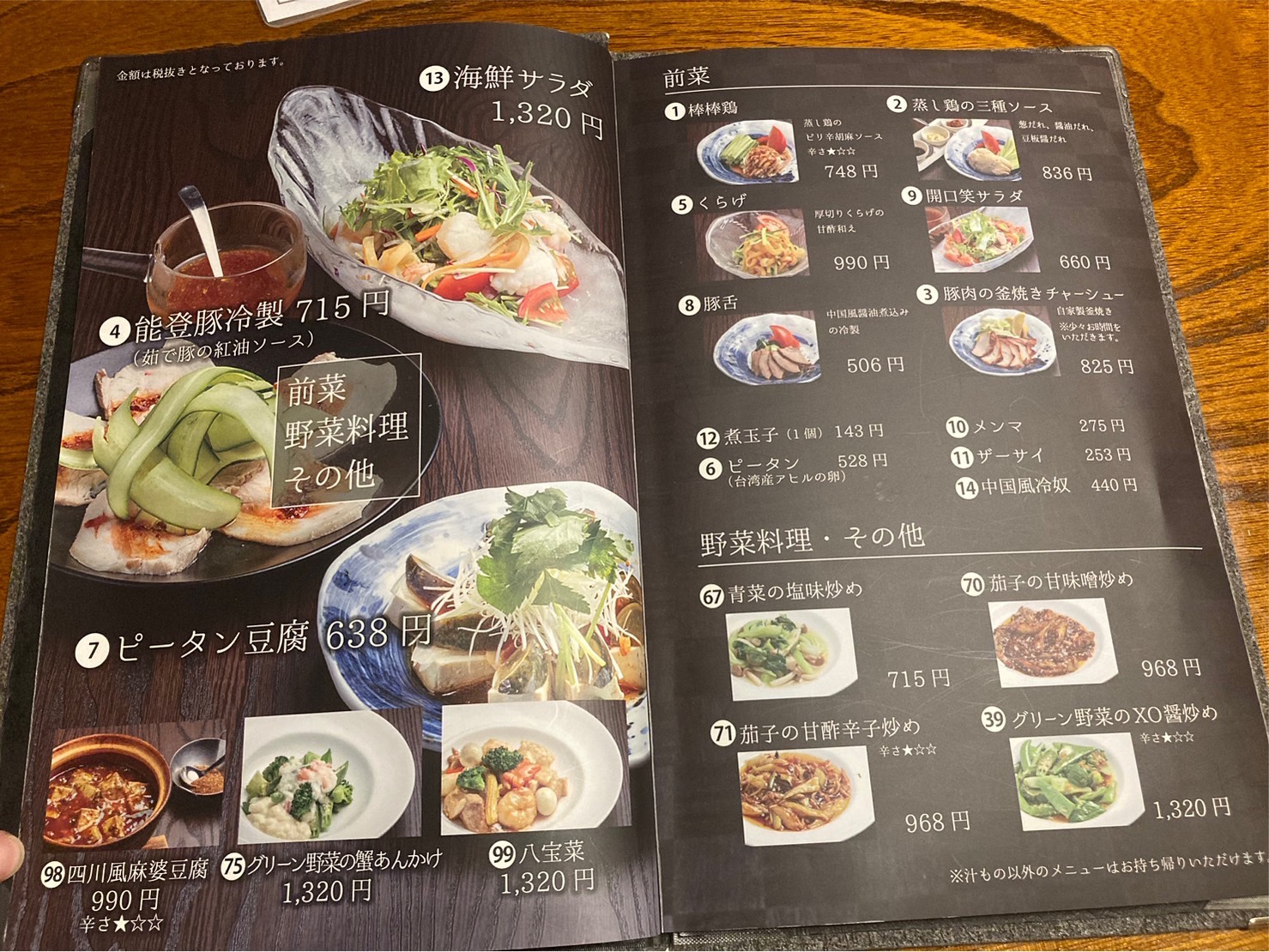 20歳から4年間は、志賀町にある能登ロイヤルホテルで、陳健一の兄弟子の下で修業し、その後、東京の熊谷喜八シェフが創業したキハチが運営する中国四大料理の料理人を集めたダイニングで厳しい修業時代を過ごし、上海料理以外にも、四川、広東、北京料理も学ばれたそうです。飲食店を経営されていたお母さまが、お店を閉められるタイミングで羽咋に戻って、現在のお店を開業し、修業の経験を活かして上海料理ベースのオリジナルの中国料理を提供されているそうです。