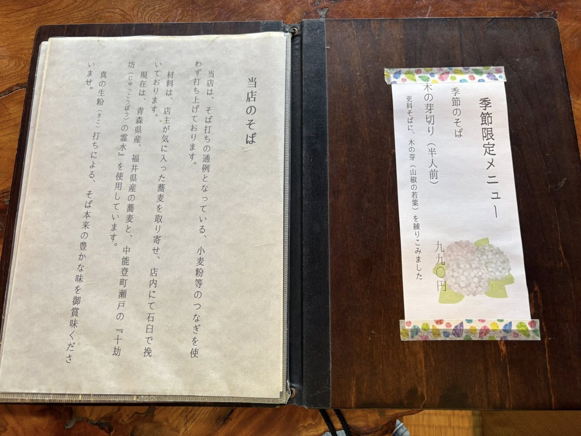 今回は、更科を季節のそば「木の芽」に変更していただきました。