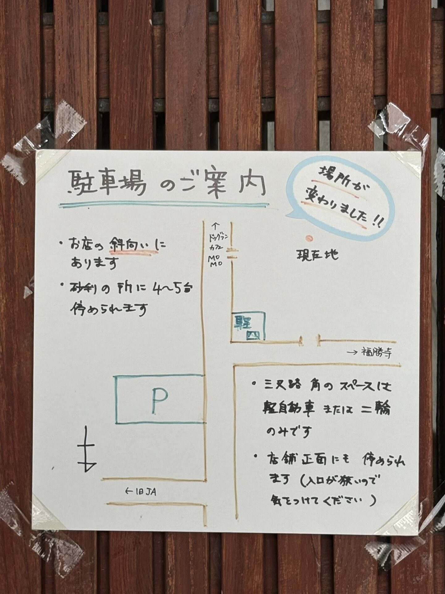 駐車場 お店の前に1台、少し離れた所に4~5台停められます。