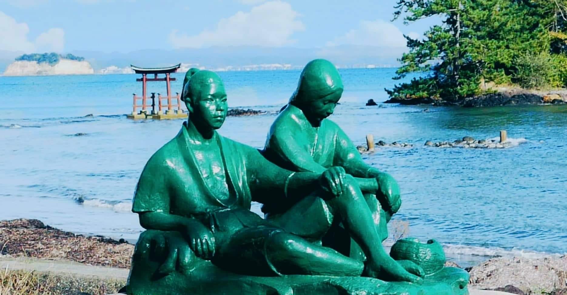 恋路海岸には仲睦まじい二人の銅像が飾られています。