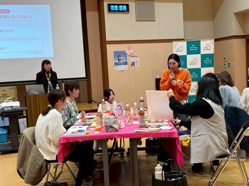 どのテーブルでも、次々と声があがり、想いがあふれていました。 産科が遠くて妊娠中の不安が大きいこと、放課後に子どもの行き場がないこと、震災で支えてくれる人が周りからいなくなってしまったことなど、ひとりひとりの声は違っても、「もっと能登で安心して子どもを育てたい」という想いは、みんな同じでした。