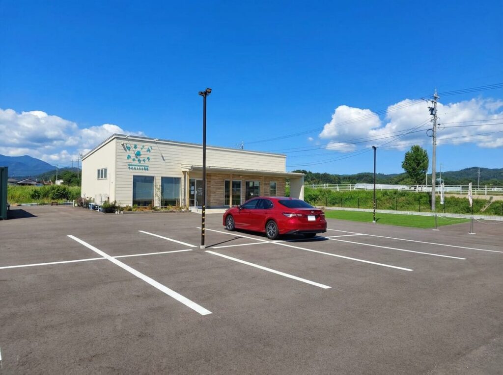 広々とした敷地には十分な駐車スペースが完備されており、車での立ち寄りやすさが魅力。