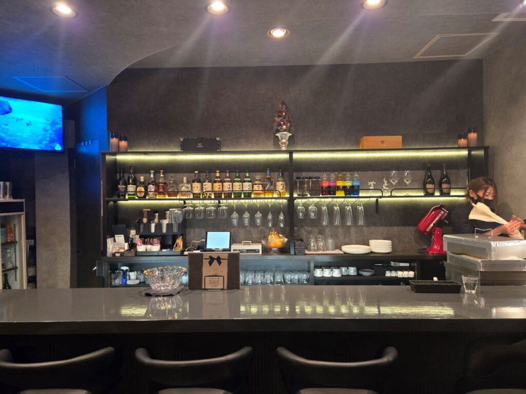 白と黒に統一されたお洒落な雰囲気になっています。店内は暖かみのある間接照明に包まれ、心地よい癒しの空間が広がっています。
