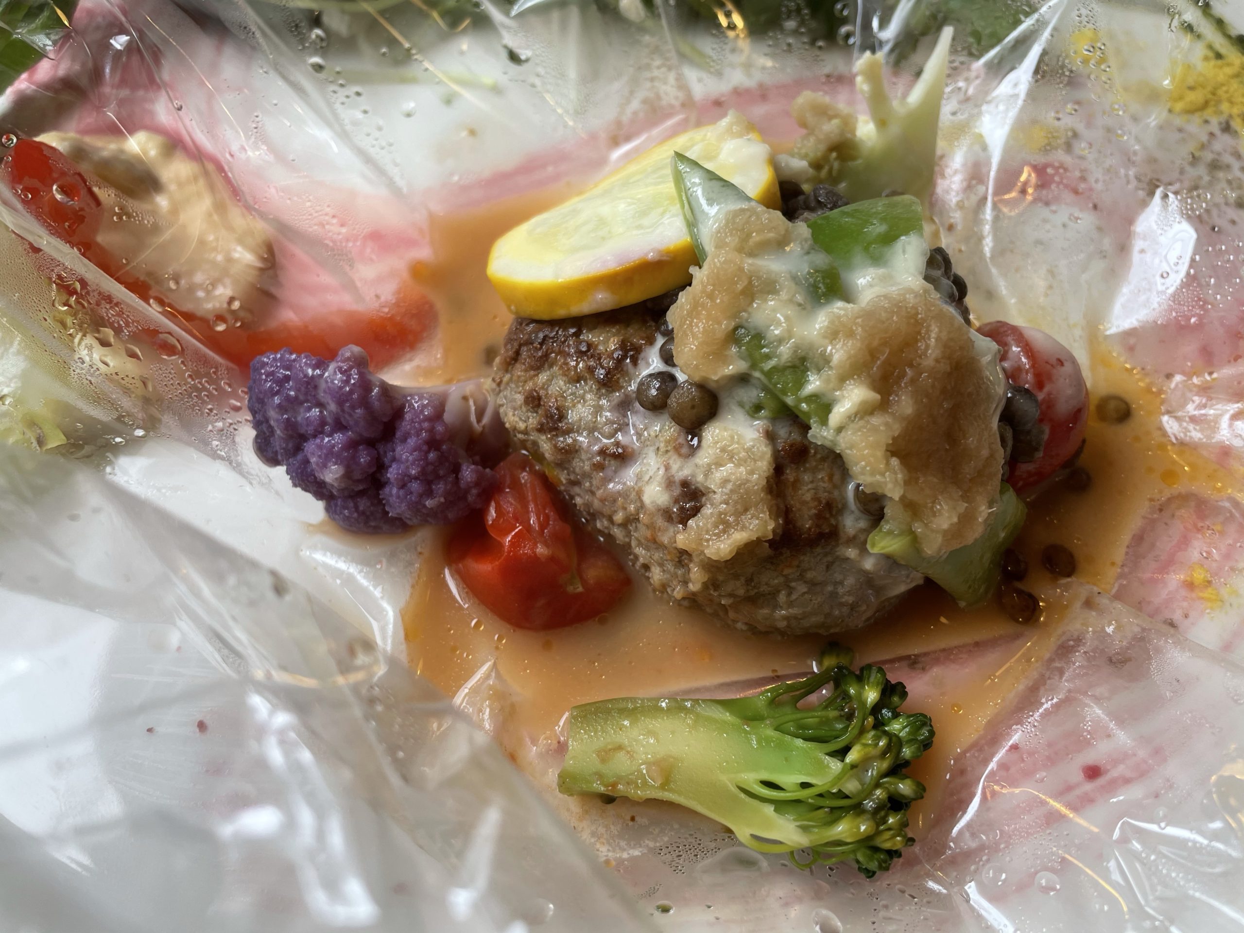 クリップを外すと、中からハンバーグと野菜が出てきました。