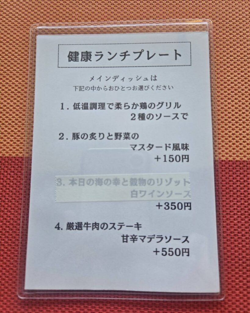 本日のスープとミニデザートがいただける健康ランチプレートplusを頂きました。