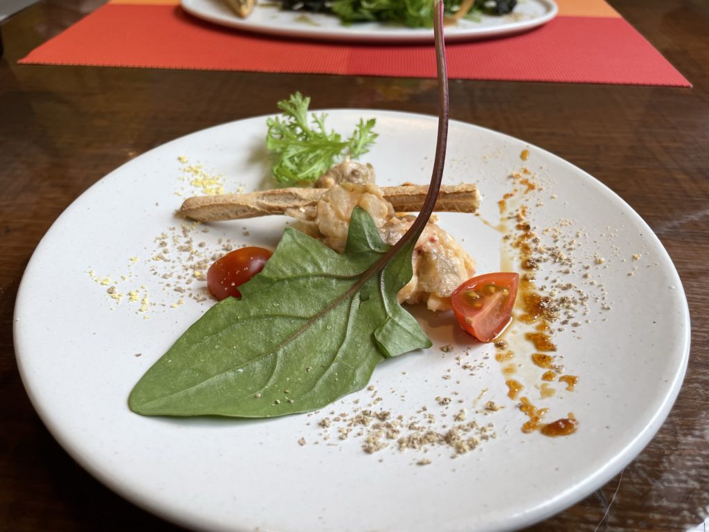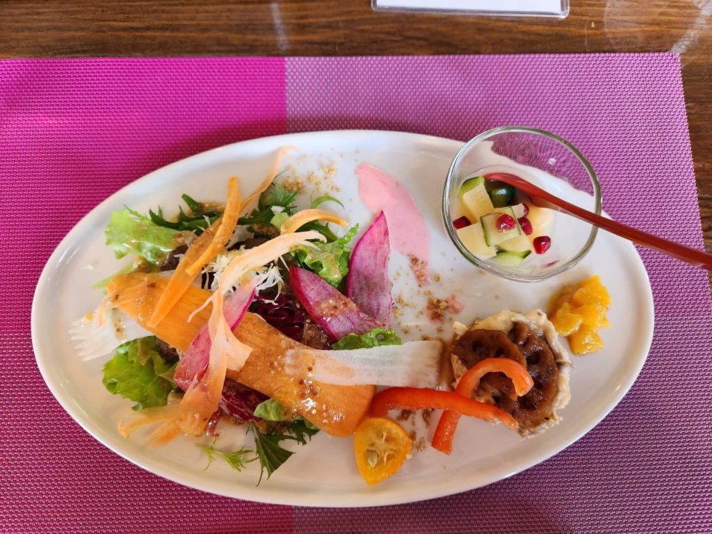 「知らない野菜を食べてみてほしい!」という想いから、毎週近江町市場で全国の美味しいお野菜を仕入れ、能登島の高農園さんからは、能登の新鮮なお野菜を仕入れられているそうです。料理にもたくさんの野菜が使われていました。