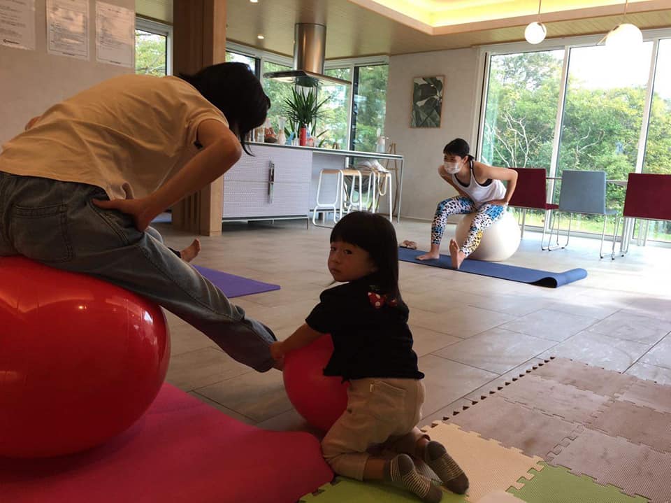 たまたま「子供連れて来ていいよ」と誘ってもらい参加した、バランスボール。