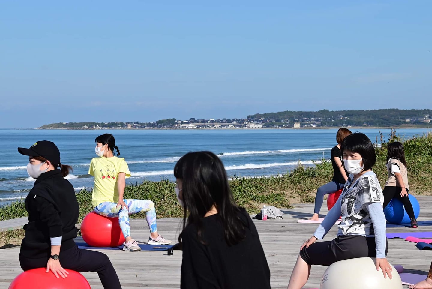 バランスボールさえあれば屋内だけでなく屋外でも楽しめるので、海を見ながら朝からバランスボールで弾むイベントも開催したとのこと♪