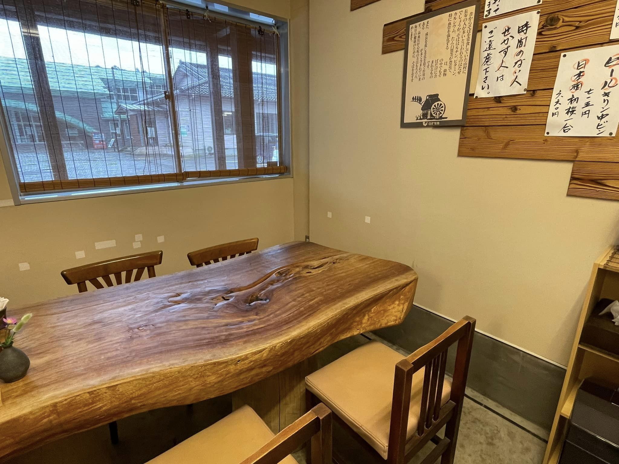 席は、この大きなテーブルが1つ、このほかに4人掛けテーブルが4つあります。