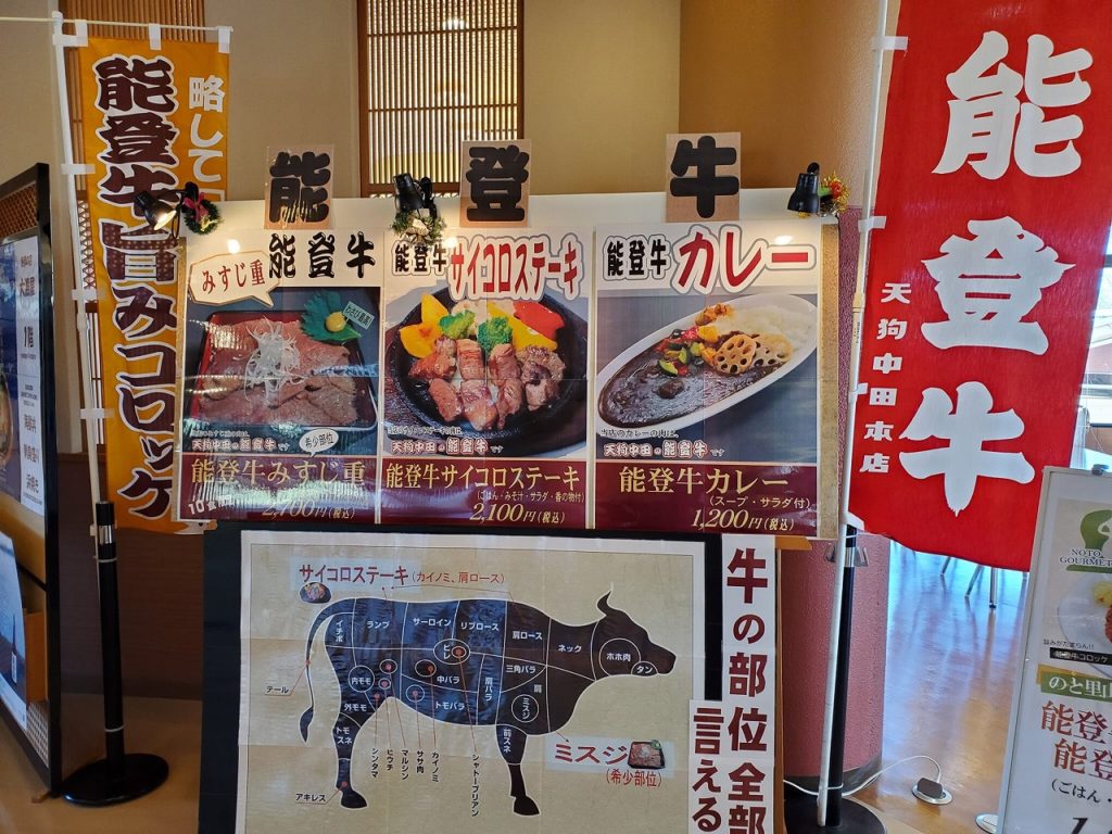 能登牛のメニューが魅力的です。