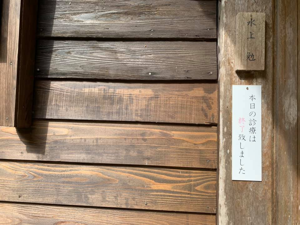 表札と、「本日の診療は終了いたしました」と書かれた札が当時のまま残されています。